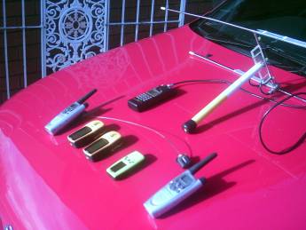 Here we have an array of communicationn and tracking devices used in 2005. L - R front: Motorola Walkie-talkie, 2 Garmen etrex GPS units, Garmin geko GPS unit, Titley Electronics 161 Mhz tracking transmitter. Rear: Alinco Scanner/Reciever and Yagi Directional Antenna. All of these devices have been superceded by GPS telemetry and GPS data loggers.
